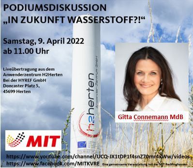 MIT Bezirk Ruhr/ MIT Recklinghausen/ MIT Ennepe-Ruhr: Podiumsdiskussion " In Zukunft Wasserstoff" mit Gitta Connemann MdB